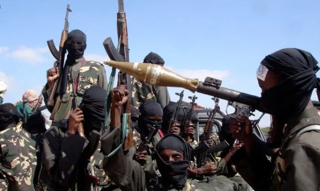 Armed al-Shabaab fighters are seen just outside the Somali capital Mogadishu in this file photo from Dec. 8, 2008. (Farah Abdi Warsameh/Associated Press)