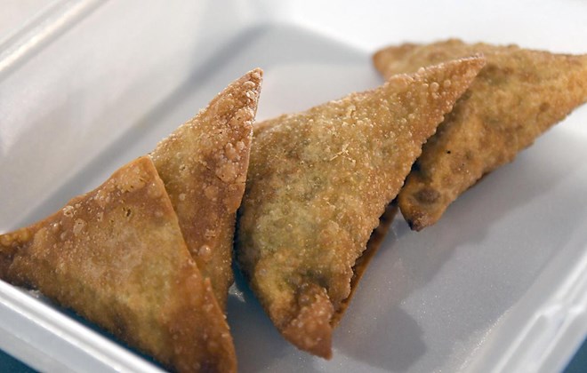 Along with sambusas, the restaurant serves a wide variety of Somali cuisine including suqaar — a dish of grilled chicken or beef cooked with onion, garlic, green pepper and rice — to bajiya, which is what customer Lauren Mendez McConkey, of Mankato, opted for Monday.