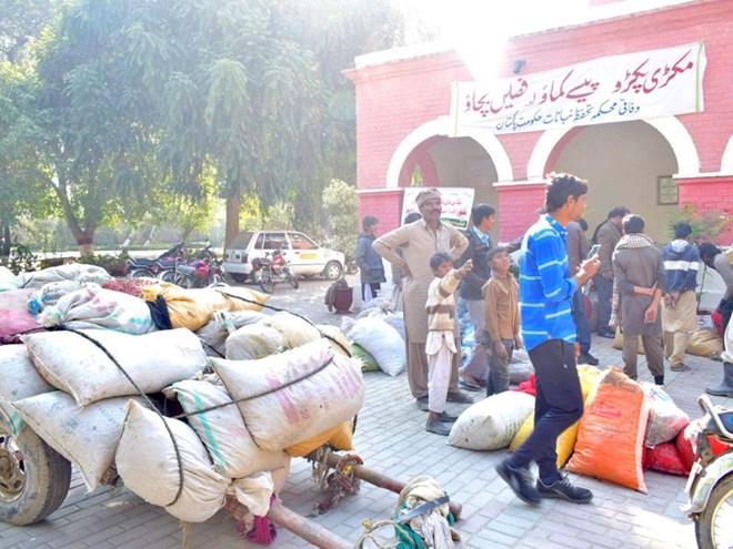 In four days, the locals managed to collect 25 tonnes of locust, every day bringing bags full of locust on carts and bikes to sell in the market. Image Credit: Dr Khurshid