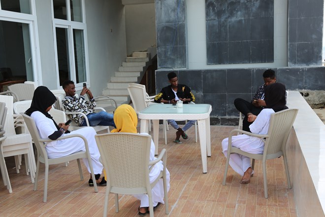 COVID-19 has changed not only the way people work and learn, but also the way they socialize and interact. Shown here, a group of young people enjoy some downtime at a restaurant in Mogadishu while observing the social distancing recommendations by staying at least 1.5 metres away from each other.