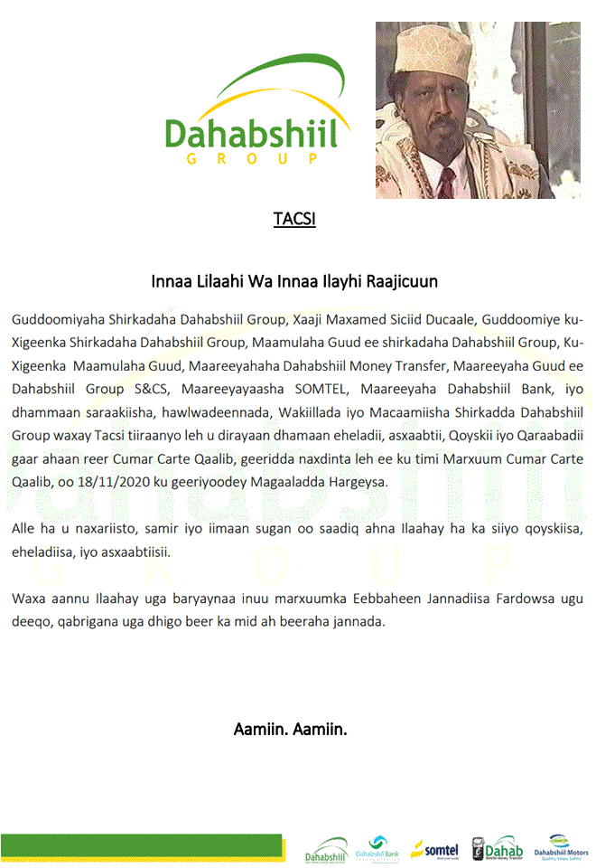 Tacsida Marxuum Cumar Carte Qaalib