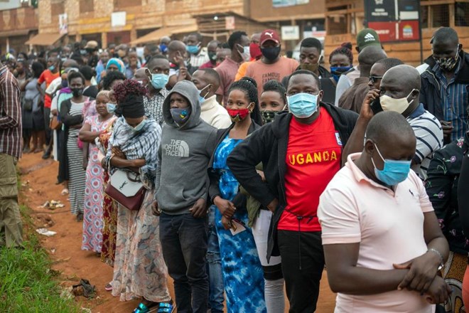 FILE - In this Thursday, Jan. 14, 2021 file photo, Ugandans wait to vote in the presidential election in Kampala, Uganda. The United States said Friday, April 16, 2021 that it is imposing visa restrictions on “those believed to be responsible for, or complicit in, undermining the democratic process in Uganda,” including during the election in January and the campaign period. (Jerome Delay, File/Associated Press)