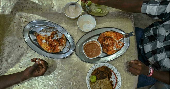 "The most important thing is the chilli," says one of the cooks, beaded with sweat, as he secures the fish to a long metal rod, before plunging it into a traditional terracotta oven, which resembles an Indian tandoor.