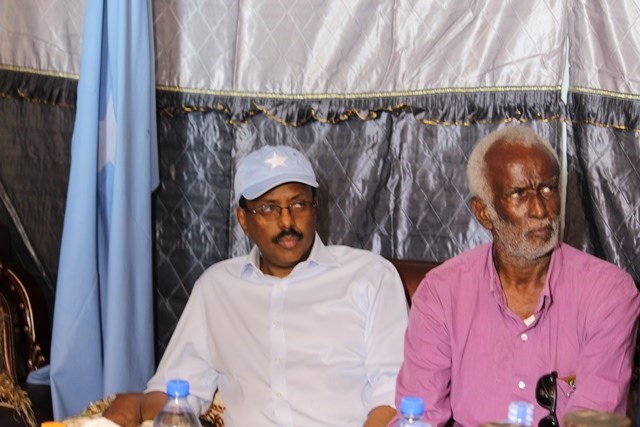 President Farmajo meets with Ugas Hassan Ugas Khalif, the Ugas in Beledweyne, on Monday, April 30, 2018, to discuss severe flooding in the region./HOL