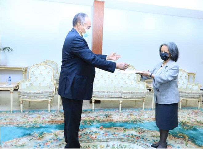 Mogadishu (HOL) - Ethiopian President Sahle Work Zewde has received credentials from the newly appointed Somali Ambassador to Ethiopia Abdullahi Ahmed Jama Ilka-Jiir.