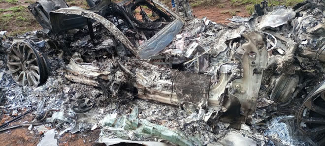 The officers had taken photos of the shell using their mobile phones. The photos show the car was burnt beyond recognition. It is not clear who burnt it or if there was an occupant therein.