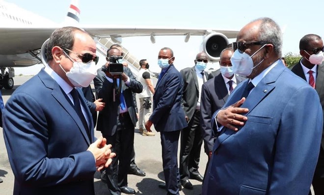 Al-Sisi met his newly-reelected Djiboutian counterpart, Ismail Omar Guelleh, and discussed bilateral and regional issues, including the Ethiopian renaissance dam on the Nile.