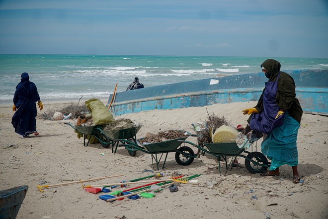 “When there are community clean-ups at the beach or other areas, people come out and join,” says Sahra, a woman from Adale who is also part of the women’s group that is organizing the cleaning activity. “Everyone greets each other, people share conversations, and the community grows closer.”