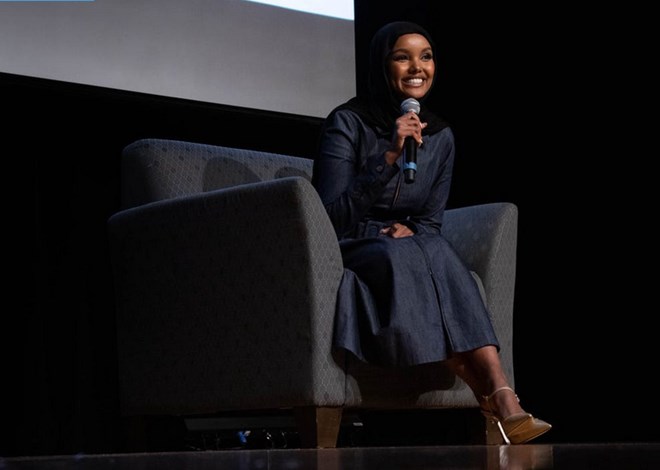 “As a Muslim girl who wears a headscarf, you face all of these struggles about fitting in," senior Saratu Garba, an emcee for Friday’s event, said. "People are always looking at you, making comments, so seeing such a powerful icon in the fashion industry try to show everybody that it’s okay to take a step back to focus on your spirituality is very touching to me."