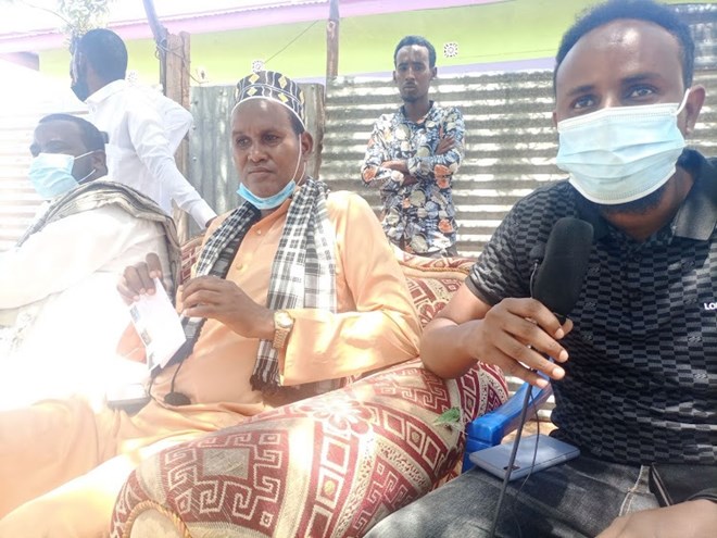 CALL FOR JUSTICE: Abdi Ali, a relative of Arab Maulid Jirow who was allegedly killed by KDF soldiers in Raskamboni, Somalia on October 17 speaking to the press on Saturday at the family home. Image: STEPHEN ASTARIKO