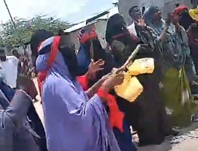 The protestors - primarily women and children - gathered at the Tarabuunka intersection in Hodan district, burning car tires and other debris and disrupting public transport for hours.