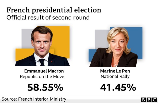 "An answer must be found to the anger and disagreements that led many of our compatriots to vote for the extreme right," Mr Macron said in his victory speech. "It will be my responsibility and that of those around me."