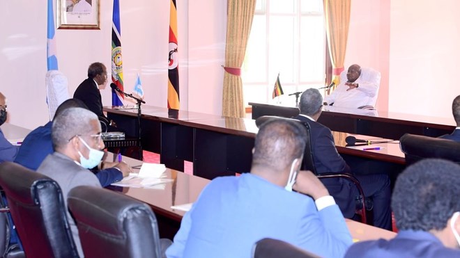 President Mohamud has been in Uganda for a three-day State visit since Monday, where he held bilateral talks with his host at State House Entebbe on August 8.