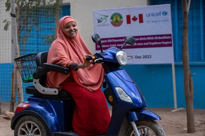 Katra is a student at a school in Somalia supported by UNICEF Canada's UNdaunted program, which provides access to education for girls with disabilities. © UNICEF/MULUGETA AYENE