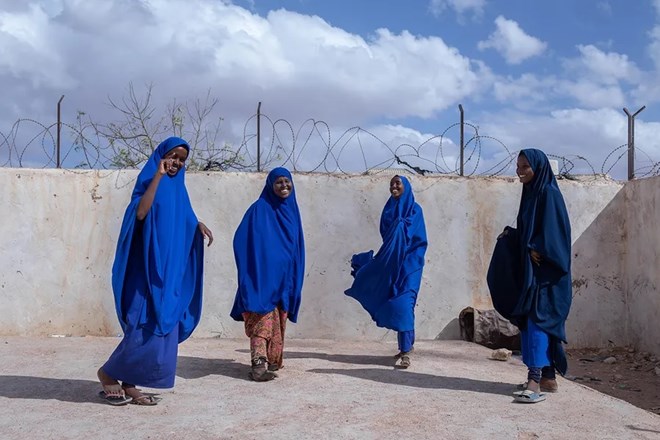 Girls at recess in the courtyard of a primary school supported by UNdaunted in Somalia. ©UNICEF/UN0635171/AYENE
