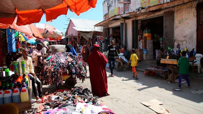 People walk in a street in Mogadishu, Somalia on December 22, 2020. The conditions in Somalia have been tough and economic resilience needs to be strengthened. PHOTO | SADAK MOHAMED | ANADOLU AGENCY