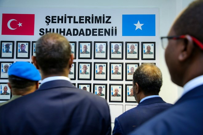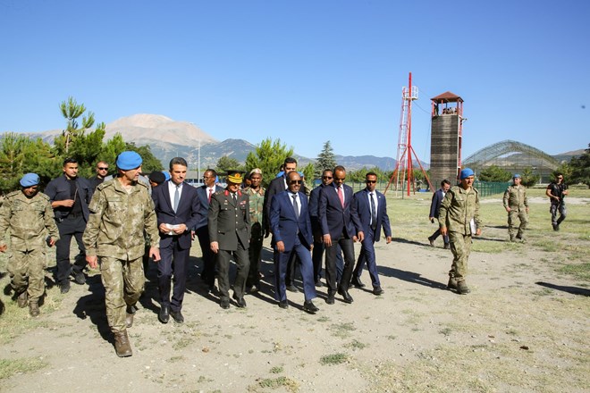 The President was welcomed by officials from the Ministry of Defense and Turkish Armed Forces and thanked them for their essential role in rebuilding the Somali army.