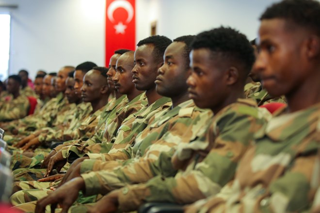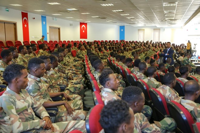 Mogadishu (HOL) - Somali President Hassan Sheikh Mohamud visited the commando training center in Isparta, Turkey, on Tuesday, where Somali soldiers received training under an army cooperation pact between the two countries.