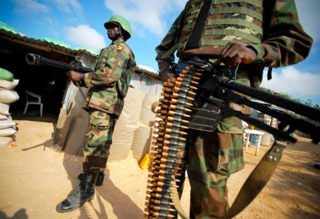 An African Union Mission in Somalia (AMISOM) – Ugandan soldiers guard the frontline of the Yaaqshiid District. Photo: AMISOM / Alamy