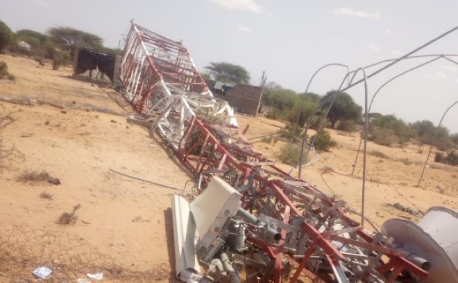 Gunmen believed to al-Shabaab militants attacked and destroyed a communication mast in Slaughter area, Rhamu, Mandera County leaving many out of reach.