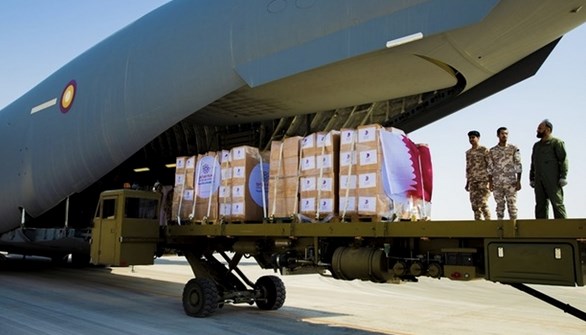 The aid has been sent from Qatar Fund for Development and Qatar Charity, in cooperation with the Amiri Air Force.