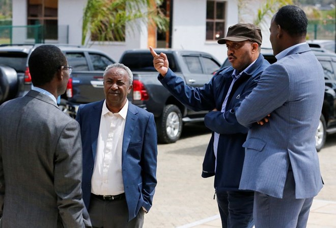 [1/5] Getachew Reda, spokesman for the Tigray authorities talks to other officials at the meeting on the implementation of the cessation of hostilities agreement between the government of Ethiopia and the forces from Tigray, in Nairobi, Kenya November 12, 2022. REUTERS/Thomas MukoyaRead