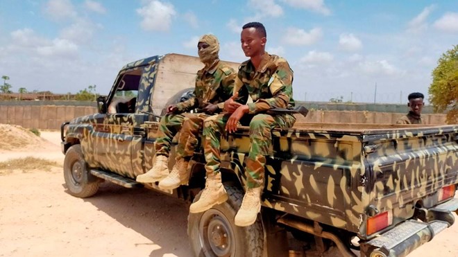 Somali National Army soldiers at the Atmis Sector 6 headquarters in Kismayo on October 13, 2022. AU says it will delay withdrawal of its sanctioned military forces in Somalia. PHOTO | STEVE OTIENO | NMG