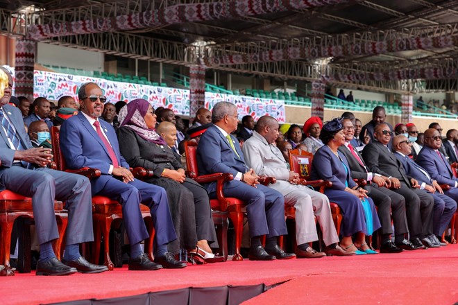 Mogadishu (HOL) - Somali President Hassan Sheikh Mohamud attended the inauguration ceremony of the Kenyan's new President of Kenya, William Samoei Ruto, in Nairobi on Tuesday.