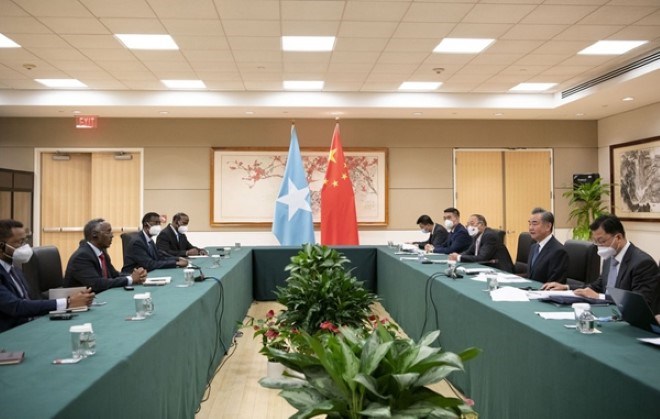 Chinese State Councilor and Foreign Minister Wang Yi on Wednesday met with Somali Foreign Minister Abshir Omar Huruse on the sidelines of the 77th session of the UN General Assembly.