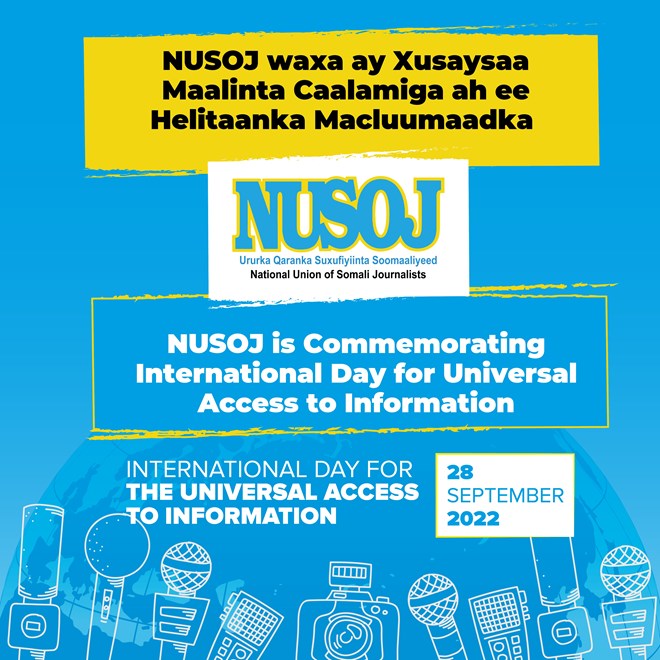 The National Union of Somali Journalists (NUSOJ) joins the world in commemorating the International Day for Universal Access to Information. This year’s theme, “Artificial Intelligence, e-Governance and Access to Information”, aptly encourages journalists and citizens at large to reflect on the consistently dynamic and fast-paced information ecosystem that has digital technology at its heart.