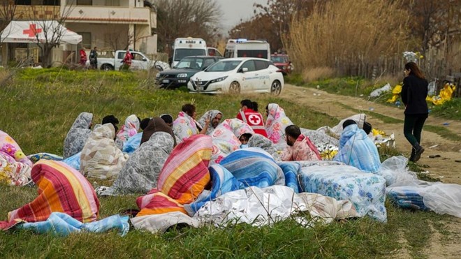 Some migrants who were saved from the shipwreck that occurred on Feb. 26, 2023, were rescued and helped and warmed by blankets in Steccato di Cutro, near Crotone, in Calabria, southern Italy. Antonino D'Urso/KONTROLAB/LightRocket via Getty
