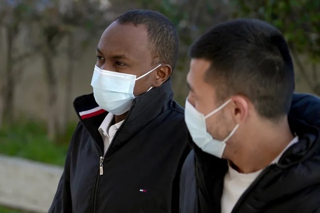 Mohamad Hanad Abdi from Somalia, left, arrives at a court in Mytilene, on the northeastern Aegean island of Lesbos, Greece, Monday, Jan. 9, 2023. The Somali migrant serving life in prison for people smuggling appeared in court Monday to appeal his sentence, in a case backed by a group of European Parliament members who say he was wrongfully convicted. Mohamad Hanad Abdi was sentenced to 142 years in prison in 2021, convicted following a deadly crossing in a dinghy from Turkey to the nearby Greek island of Lesbos the previous year. (AP Photo/Panagiotis Balaskas)