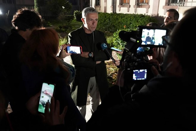 Greek left-wing member of the European Parliament Stelios Kouloglou makes statements outside a court in Mytilene, on the northeastern Aegean island of Lesbos, Greece, Monday, Jan. 9, 2023. A Somali migrant serving life in prison for people smuggling appeared in court Monday to appeal his sentence, in a case backed by a group of European Parliament members who say he was wrongfully convicted. PHOTO BY PANAGIOTIS BALASKAS /THE ASSOCIATED PRESS