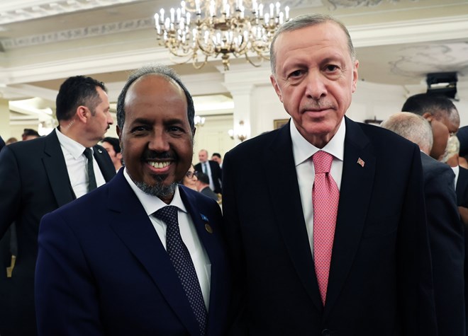 Mogadishu (HOL) - Somali President Hassan Sheikh Mohamud attended the inauguration ceremony of Turkey's newly re-elected President, Recep Tayyip Erdogan, on Saturday, where he congratulated President Erdogan, his party, and his political alliance for their historic victory in Turkey's national elections.
