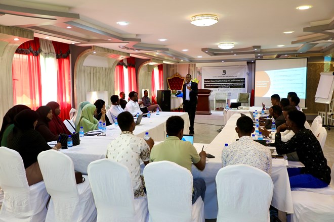 The training workshop held in Mogadishu from Nov 25 to Nov 27, 2023, aimed to equip journalists with skills to analyze and report on the 2024 federal government budget.