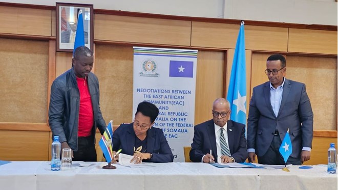 Somalia and EAC Lead negotiators have inked a final negotiations outcome report to be forwarded to the Council of Ministers for deliberations & on-ward submission to the Summit of the EAC Heads of State for consideration. The negotiation took place at the Kenya school of government in Nairobi, Kenya. PHOTO | COURTESY