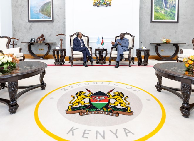 President Willia Ruto on Thursday hosted President Hassan Mohamud of Somalia at State House, Nairobi.