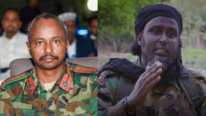 FILE PHOTOS - General Dayah Abdi Abdulle, Commander of Somalia's Ground Forces. Right: Ali Mohamud Rageh, known as Ali Dheere, a senior leader of the Al-Shabaab militant group.