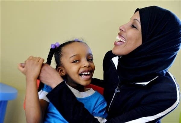 FILE - In this March 29, 2011 photo, Hodan Hassan is shown at her Minneapolis home with her daughter Geni, 6, who has autism. Health officials struggling to contain a measles outbreak that's hit hard in Minneapolis' large Somali community are running into resistance from parents who fear the vaccine could give their children autism.Jim Mone/AP