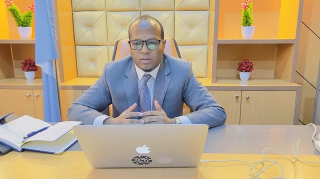 FILE - Mustafa Yasin Sheik, Director General of Somalia’s National Communications Authority (NCA), pictured during a virtual meeting. CREDIT / SONNA