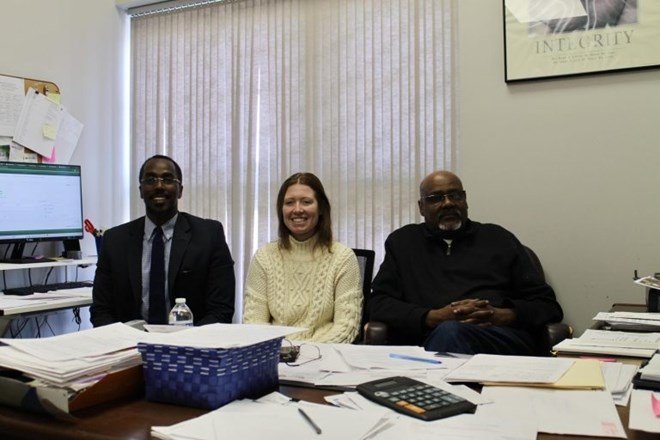 CEO of United Somali Youth Said Ahmed, SDC Program Director Colleen Leddie and SDC founder Abdirahman Yusuf in the SDC office in Roxbury. (Photo: Aiden Stein)