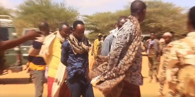 Somali National Army personnel escort detained officials and elders in El-Baraf district, Middle Shabelle region, following a deadly ambush that claimed the lives of six soldiers and their driver. CREDIT / SONNA