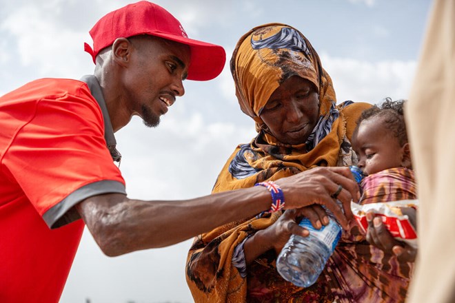 Save the Children Ambassador Sir Mo Farah travelled to his birthplace, Somaliland with Save the Children to see first-hand, the devastating toll of climate change and malnutrition on children and families. Mustafa Saeed / Save the Children
