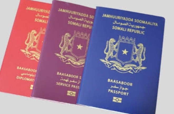 FILE - Various types of Somali passports, including diplomatic (red), service (maroon), and regular (blue) passports. The EU has proposed new visa restrictions for Somali nationals.