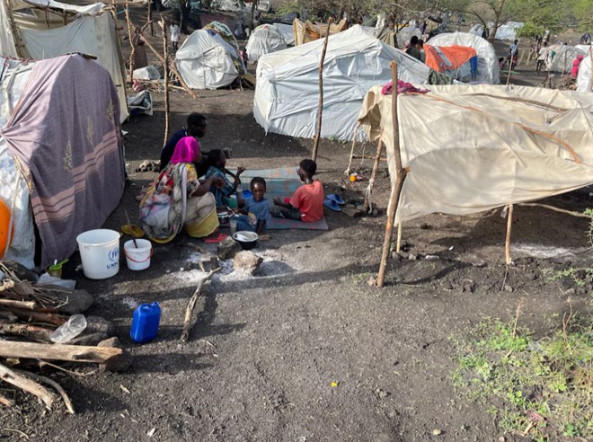 People sit by makeshift shelters near Awlala Camp, Amhara region, Ethiopia May 31, 2024. Alfatih Alsemari/Handout via REUTERS Purchase Licensing Rights