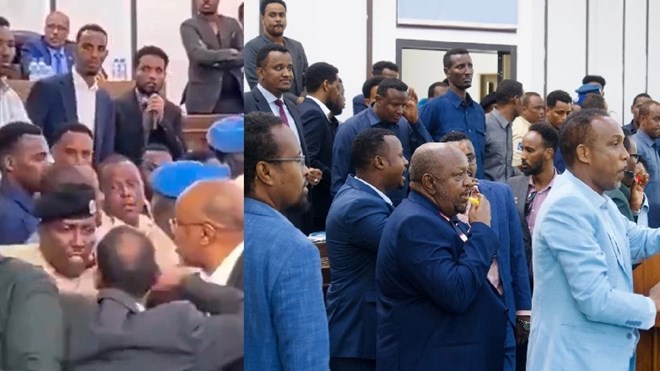 Mogadishu (HOL) — A heated altercation erupted in Somalia's parliament Monday, leaving a police officer injured and raising concerns over the conduct of lawmakers as the country navigates critical electoral milestones. The officer was struck while mediating tensions among MPs debating the National Electoral Commission, an incident now under investigation.