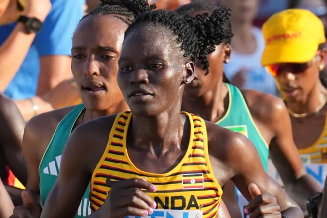 Ugandan long-distance runner Rebecca Cheptegei competes in the World Athletics Championships in Budapest, Hungary, on August 26, 2023 [Kirby Lee/USA Today Sports]
