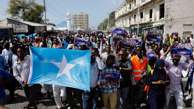 Somali people march against the Ethiopia-Somaliland port deal at the Yarisow stadium in Mogadishu, Somalia on January 3, 2024. PHOTO | REUTERS