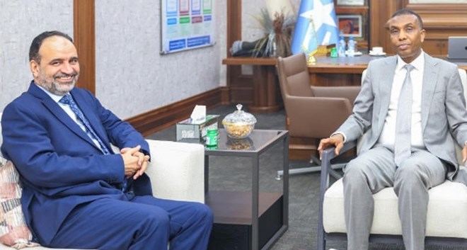 Hamsa Abdi Barre, the Prime Minister of the Federal Republic of Somalia, met with Ambassador Abdullah Al Otaibi, Head of the Arab League Mission to Somalia, to discuss means to enhance joint cooperation, particularly in political and economic domains.