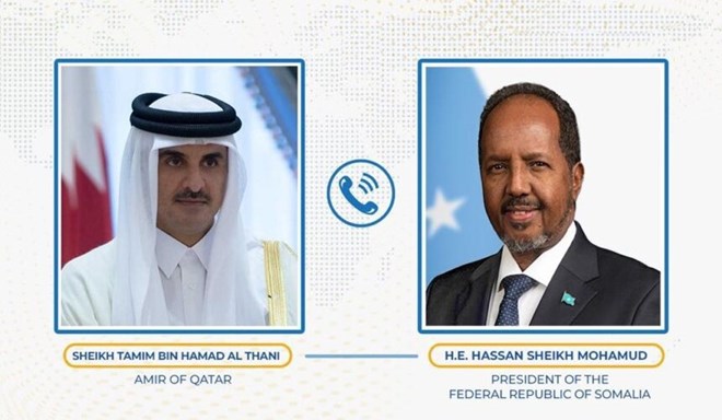 Mogadishu (HOL) – Somali President Hassan Sheikh Mohamud held a phone conversation with Qatar's Amir, Sheikh Tamim bin Hamad Al Thani, on Monday to enhance their long-standing bilateral ties and cooperation.